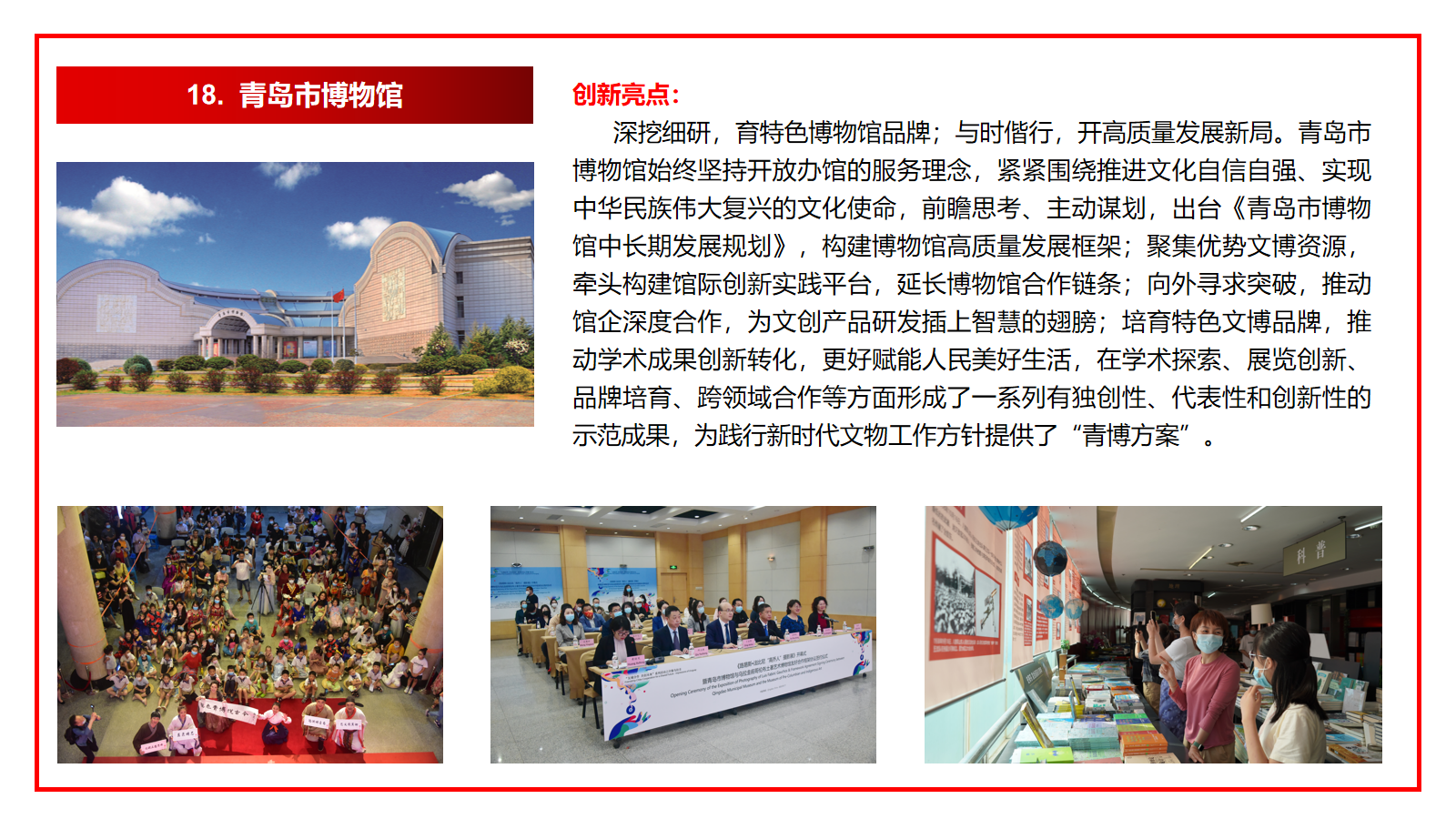“全国最具创新力博物馆”是中国博物馆协会设立、组织评选和颁发的荣誉称号,旨在推动我国博物馆在当地文化建设中发挥更加积极的作用,鼓励各博物馆在相关业务功能领域开展学术研究并进行实践创新。