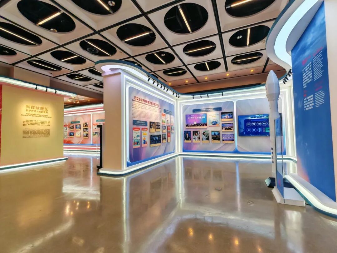 展览分为制度赋能区、科技赋能区、公益参与区、全球行动区、文化传承区五大展区,通过200余张珍贵图片,丰富的视频影像,详实的数据图表,运用AI、VR等技术手段,打造科技互动体验项目,立体呈现中国以数智赋能促进男女平等和妇女及女童全面发展的丰硕成果。