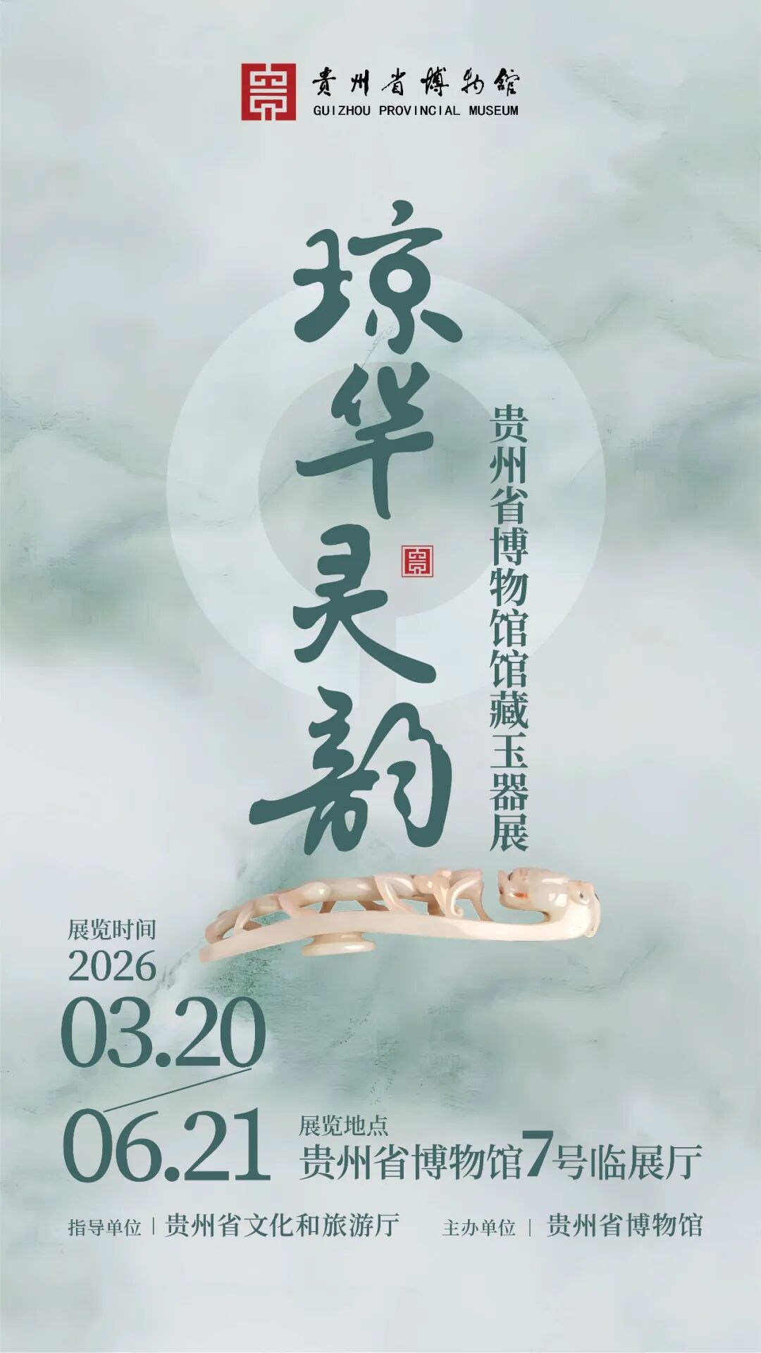 琼华灵韵——贵州省博物馆馆藏玉器展将于3月20日在贵州省博物馆7号临展厅正式开展,150余件(套)珍贵玉器惊艳亮相,本次展览分天地之灵、玉饰风华、玉蕴生活、玉游于艺四大单元,串联玉器从神坛礼器到日常雅物的演变,讲述中华玉文化的千年故事。