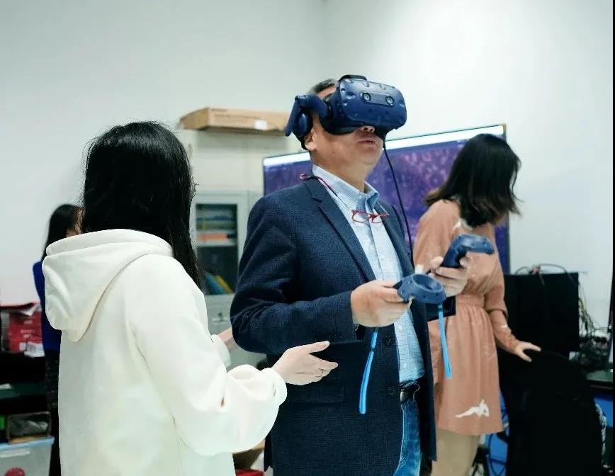 柴秋霞教授从新的视角出发,向刘理事长汇报了关于博物馆数字化的相关研究。她指出“如今全国各界都逐渐意识到‘数字化’的重要性,并开启开发和研究的热潮”,她介绍了博物馆数字化的缘起与未来应用方向,并特别强调“博物馆界须扭转对数字化的传统刻板印象、以更开放包容的心态拥抱数字化,高校则应主动正视数字化所带来的机遇与问题”。会后,刘曙光理事长参观了复旦大学文物与博物馆学系新成立的数字艺术中心,体验了打虎亭汉墓VR漫游等互动展项,进一步了解了博物馆数字化的最新进展。